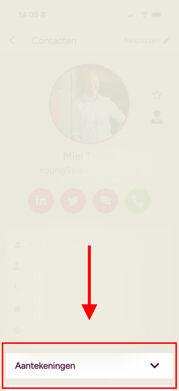 - Klaar, je notitie blijft gekoppeld aan dit contact